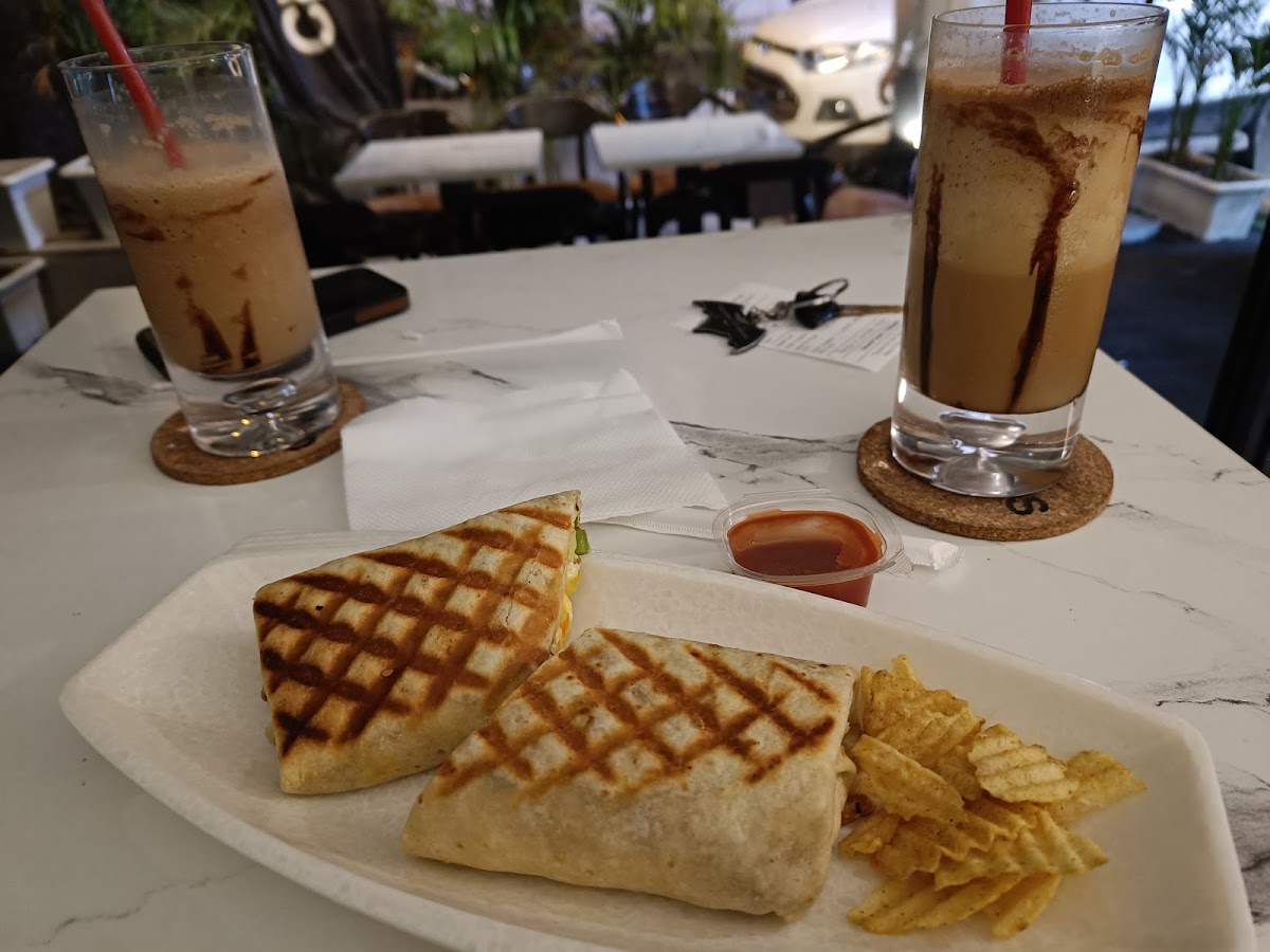 The food menu is casual but thoughtfully put together, with a focus on wraps (vegetarian and chicken options), pasta dishes like white sauce and Bolognese, and comfort snacks such as mac & cheese variations and chicken seekh kabab wraps. The portion sizes make for a decent quick meal or shareable snack. Desserts like caramel cheesecake and chocolate fudge pastry add a sweet finish if you’re lingering a bit longer.